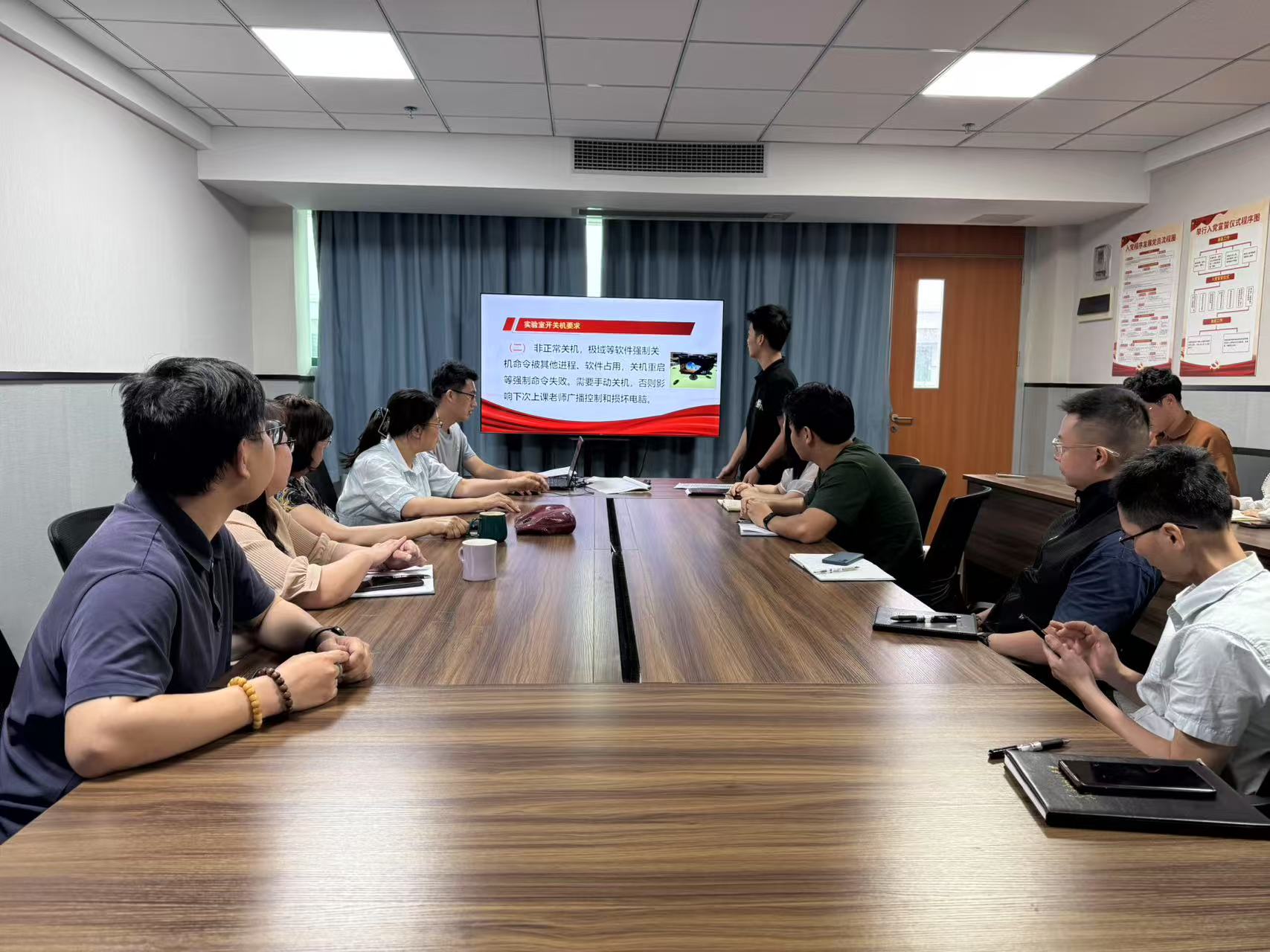 培訓(xùn)中,謝老師首先介紹實(shí)訓(xùn)室上課開關(guān)機(jī)操作、實(shí)驗(yàn)室衛(wèi)生要求及實(shí)驗(yàn)室開關(guān)電閘要求,規(guī)范操作,提升實(shí)驗(yàn)室安全性和提高實(shí)訓(xùn)室的衛(wèi)生整潔度。
