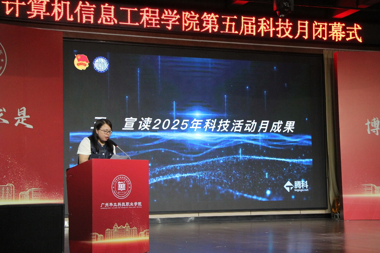 計算機信息工程學(xué)院副院長閔小翠在會上宣讀了2025年科技活動月的成果。她詳細介紹了活動月期間舉辦的各類科技創(chuàng)新賽事、學(xué)術(shù)講座、實踐項目以及取得的突出成績。在本次活動中,全校師生積極參與,橫跨七個學(xué)院,共有1100余名同學(xué)參賽,參賽人數(shù)和作品數(shù)量均創(chuàng)歷史新高,充分體現(xiàn)了同學(xué)們對科技比賽的熱情。眾多作品在比賽中脫穎而出,獲得了優(yōu)異的成績,展現(xiàn)了學(xué)校在科技創(chuàng)新領(lǐng)域的強大實力和師生們的創(chuàng)新熱情。