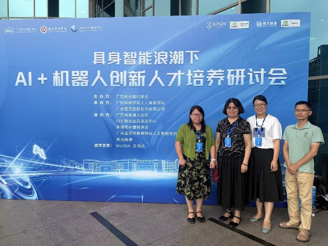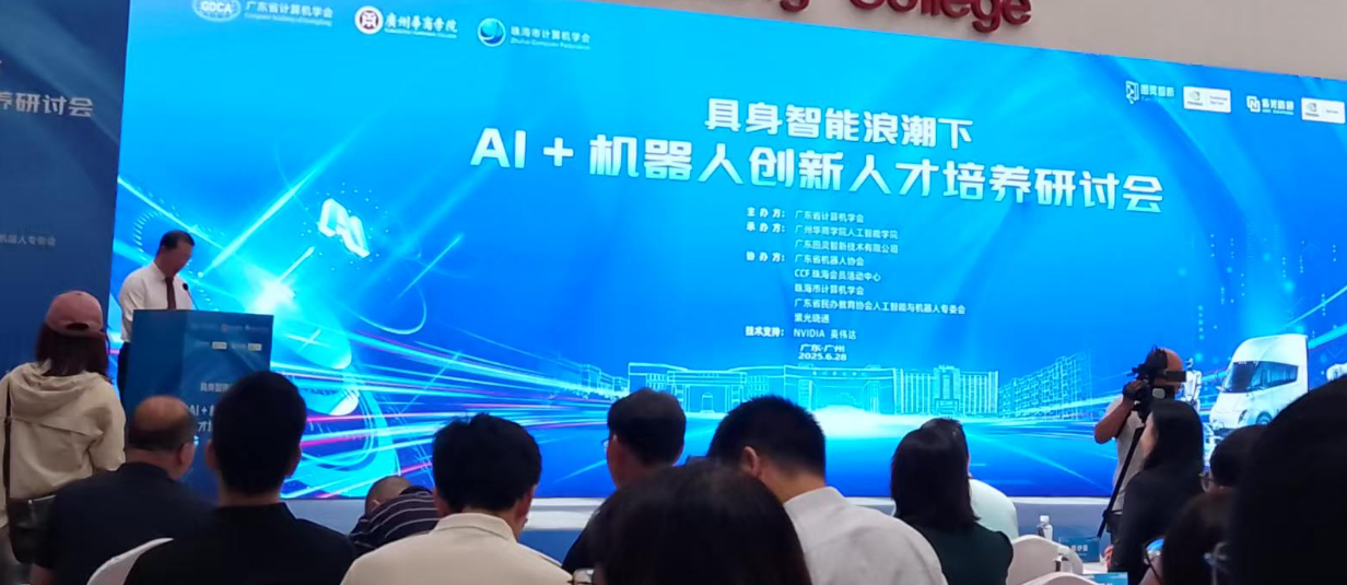 計(jì)算機(jī)學(xué)院王建華院長(zhǎng)帶領(lǐng)我院一眾優(yōu)秀導(dǎo)師參加2025年6月28日,由廣東省計(jì)算機(jī)學(xué)會(huì)主辦、廣州華商學(xué)院人工智能學(xué)院與廣東圖靈智新技術(shù)有限公司承辦的“具身智能浪潮下:AI+機(jī)器人創(chuàng)新人才培養(yǎng)研討會(huì)”在廣州華商學(xué)院中央圖書館隆重舉行。來自中山大學(xué)、華南理工大學(xué)、暨南大學(xué)等30余所高校的人工智能學(xué)院院長(zhǎng)、學(xué)科帶頭人,以及近20家頭部企業(yè)代表齊聚一堂,圍繞AI與機(jī)器人深度融合背景下的創(chuàng)新人才培養(yǎng)路徑展開深度探討,并共同見證“廣州華商學(xué)院機(jī)器人產(chǎn)業(yè)學(xué)院”揭牌成立。