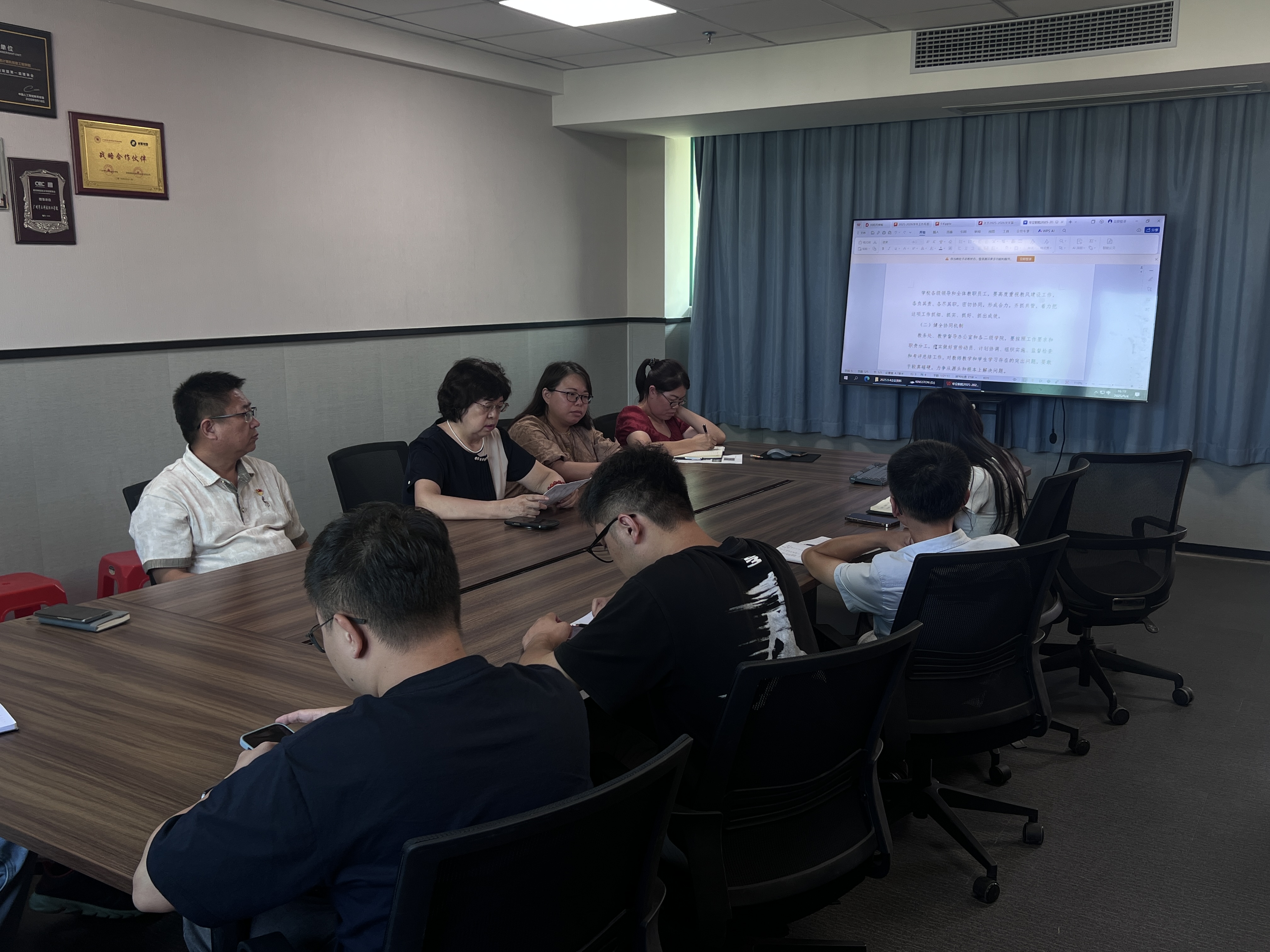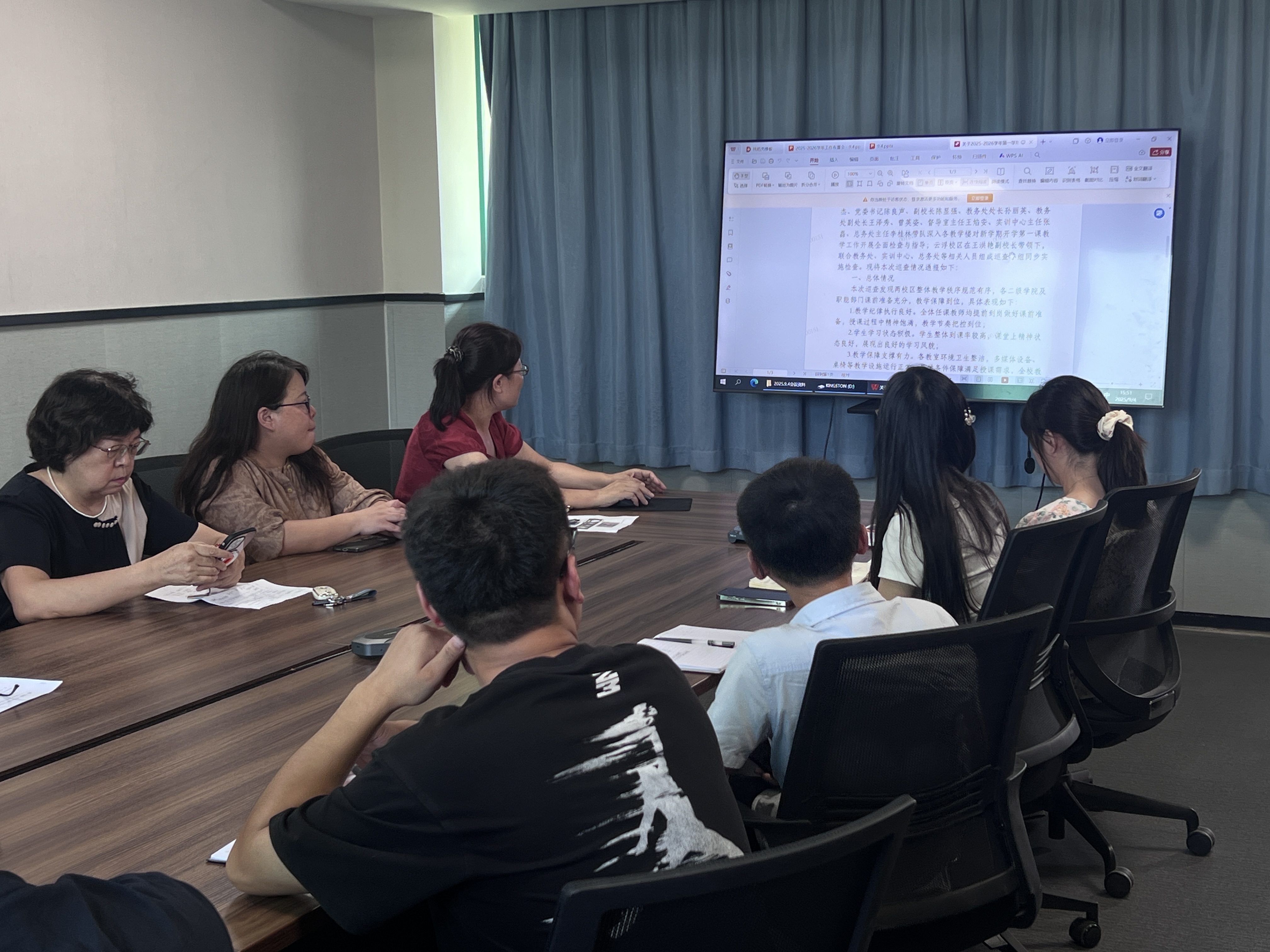 王主任通報了近期教學工作整體情況。重點圍繞教學紀律、教態(tài)規(guī)范、教學安排、教風學風等方面,并指出當前存在的部分教師在教學場所周邊有不規(guī)范行為、部分教師授課時與學生互動不夠充分等問題,同時提出初步改進建議。