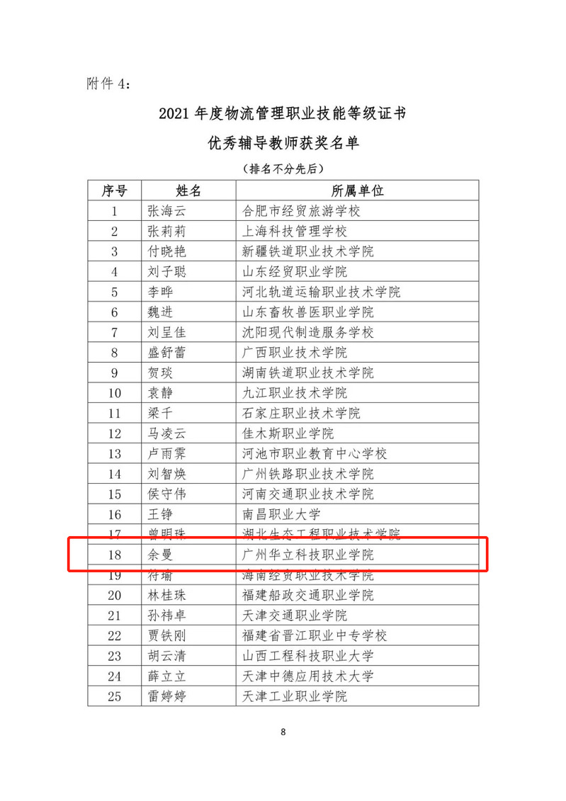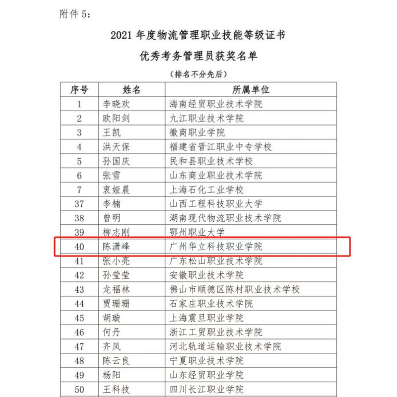 2022年6月16日,北京中物聯(lián)物流采購培訓中心公布了2021年度物流管理職業(yè)技能等級證書先進單位及個人名單,我校榮獲優(yōu)秀試點院校稱號,余曼老師被評為優(yōu)秀輔導教師,陳瀟峰老師被評為優(yōu)秀考務管理員。