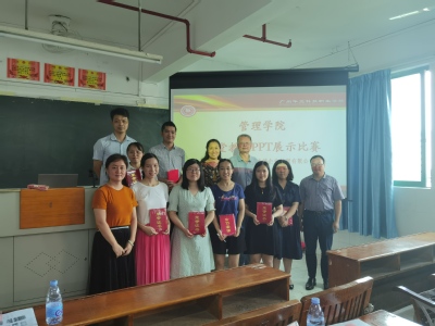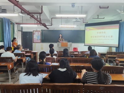 早在本學(xué)期初,管理學(xué)院就部署了此次比賽,前期是讓任課老師們按要求提交一份45分鐘的課堂教學(xué)PPT,6月份學(xué)院領(lǐng)導(dǎo)和四條線主任組成的初評小組,對收集的16份資料展開初評,最終選出7份參加此次的決賽。進入決賽的老師名單是:戴雙雅、余曼、尹麗甯、周建秀、呂麗靜、張綿、趙林創(chuàng)。