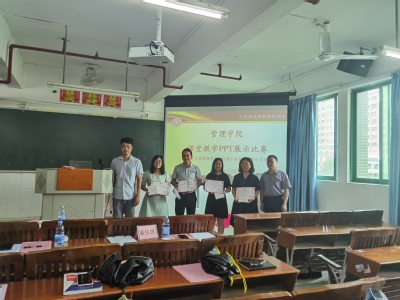 2022年6月22日,管理學(xué)院在西三-301舉行課堂教學(xué)PPT展示比賽。擔(dān)任此次比賽的評委有四位,分別是督導(dǎo)辦主任曾紀(jì)杰教授、管理學(xué)院院長程玉賢教授、黃英副教授和康信恩副教授。