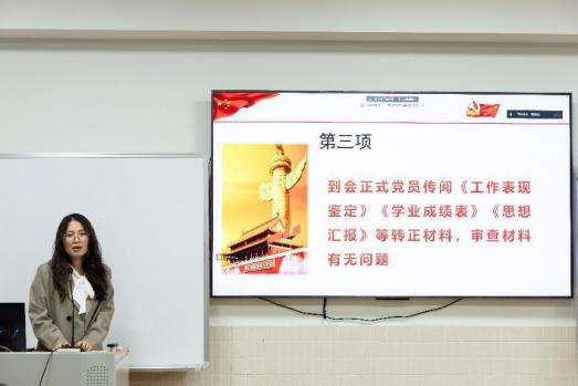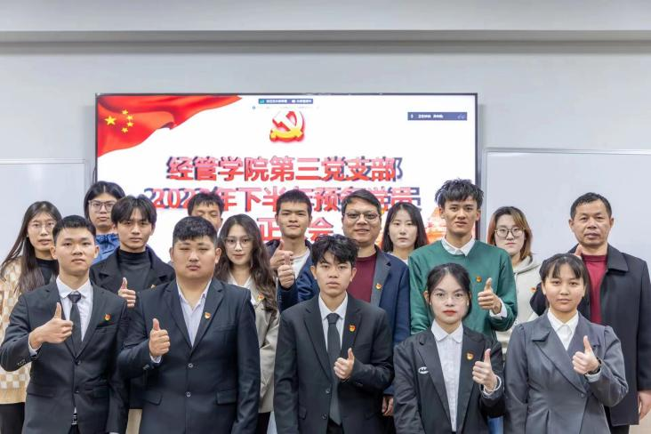 為了給黨組織注入新鮮血液,擴(kuò)大黨員隊伍,提高黨組織的戰(zhàn)斗力、凝聚力和創(chuàng)造力,加強(qiáng)黨員思想政治教育,發(fā)揮黨組織戰(zhàn)斗堡壘作用和黨員先鋒模范作用,經(jīng)管學(xué)院黨總支第三黨支部2023年12月29日在二教407舉行2023年下半年預(yù)備黨員轉(zhuǎn)正大會。全體師生黨員出席大會,會議由組織委員溫貴城主持。