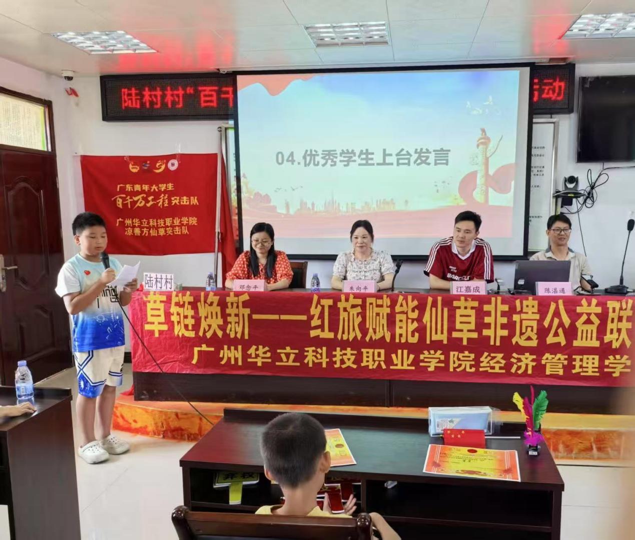 在這個(gè)夏天,廣州華立科技職業(yè)學(xué)院經(jīng)濟(jì)管理學(xué)院的涼善方仙草突擊隊(duì)于美麗的陸村開展了一系列富有意義的實(shí)踐活動。結(jié)營儀式上,經(jīng)濟(jì)管理學(xué)院朱向平副院長兼指導(dǎo)老師、陸村村委江嘉成主任以及指導(dǎo)老師們出席共同為這段特別的旅程畫上圓滿句號。