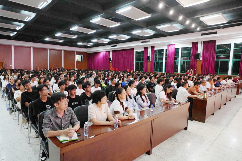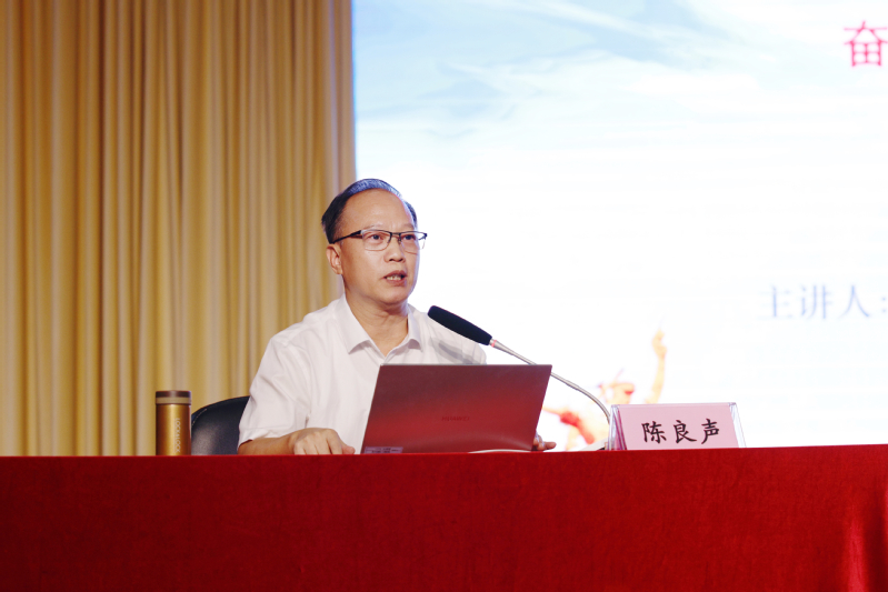 為深入宣傳學(xué)習(xí)習(xí)近平總書(shū)記在黨的二十屆三中全會(huì)上的重要講話精神和《中共中央關(guān)于進(jìn)一步全面深化改革推進(jìn)中國(guó)式現(xiàn)代化的決定》提出的重大舉措,引領(lǐng)廣大學(xué)生奮力譜寫(xiě)為中國(guó)式現(xiàn)代化挺膺擔(dān)當(dāng)?shù)那啻浩拢?/span>10月10日晚,學(xué)校黨委書(shū)記陳良聲在圖書(shū)館八樓報(bào)告廳為600多名2024級(jí)新生代表講授了題為“在進(jìn)一步全面深化改革推進(jìn)中國(guó)式現(xiàn)代化的新征程上奮力書(shū)寫(xiě)挺膺擔(dān)當(dāng)?shù)那啻浩隆钡那锛緦W(xué)期“思政第一課”。黨委副書(shū)記副校長(zhǎng)王洪艷、馬克思主義學(xué)院教師、黨委辦公室和各二級(jí)學(xué)院黨務(wù)干部參加聽(tīng)課。思政第一課由黨委辦公室主任石朝陽(yáng)主持。