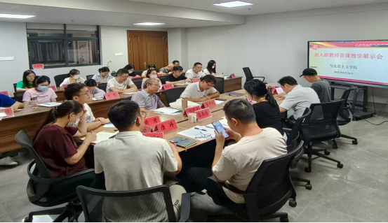 為幫助新入職的青年教師盡快站穩(wěn)講臺(tái),提高全體思政課教師的教學(xué)能力,打造一支高素質(zhì)思政課教師隊(duì)伍,8月26日下午,馬克思主義學(xué)院在G1-314室舉行兩名新入職年輕教師的首課教學(xué)展示及評(píng)課活動(dòng),學(xué)院全體教師參加。