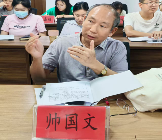 在專(zhuān)家點(diǎn)評(píng)環(huán)節(jié),毛概教研室主任董祥武副教授對(duì)李權(quán)老師的授課予以充分肯定,認(rèn)為其教學(xué)內(nèi)容邏輯嚴(yán)密、條理清晰,有助于引導(dǎo)學(xué)生深化理論認(rèn)知。思想道德與法治教研室主任龍林副教授贊賞黃勇老師教態(tài)自然、脈絡(luò)清楚、重點(diǎn)突出,并能夠緊密結(jié)合時(shí)代背景展開(kāi)教學(xué)。形勢(shì)與政策課教研室主任林良鐸副教授從教學(xué)創(chuàng)新角度出發(fā),鼓勵(lì)新教師積極嘗試多元化教學(xué)方法,不斷提升課堂吸引力和實(shí)效性。教學(xué)主任張燕金從增強(qiáng)教學(xué)內(nèi)容的時(shí)代感方面提出了自己多個(gè)方面的理解與評(píng)價(jià)。帥國(guó)文教授也對(duì)新教師的教學(xué)能力成長(zhǎng)提出寶貴建議,在對(duì)他們良好形象、氣質(zhì)與教態(tài)給予贊賞的基礎(chǔ)上,從深化理論理解、豐富教學(xué)技法、課堂上多講故事等層面進(jìn)行點(diǎn)評(píng),并建議年輕教師以后積極參與教學(xué)競(jìng)賽,以賽促教、加速成長(zhǎng)。兩位講課教師所屬教研室的其他多位教師也對(duì)他們的講課暢談了自己的感受與看法。