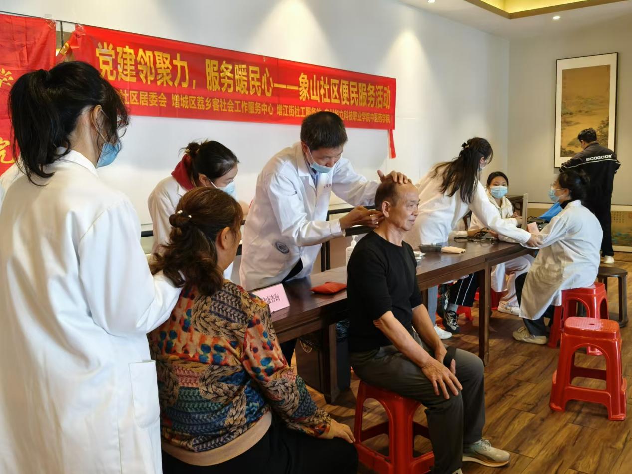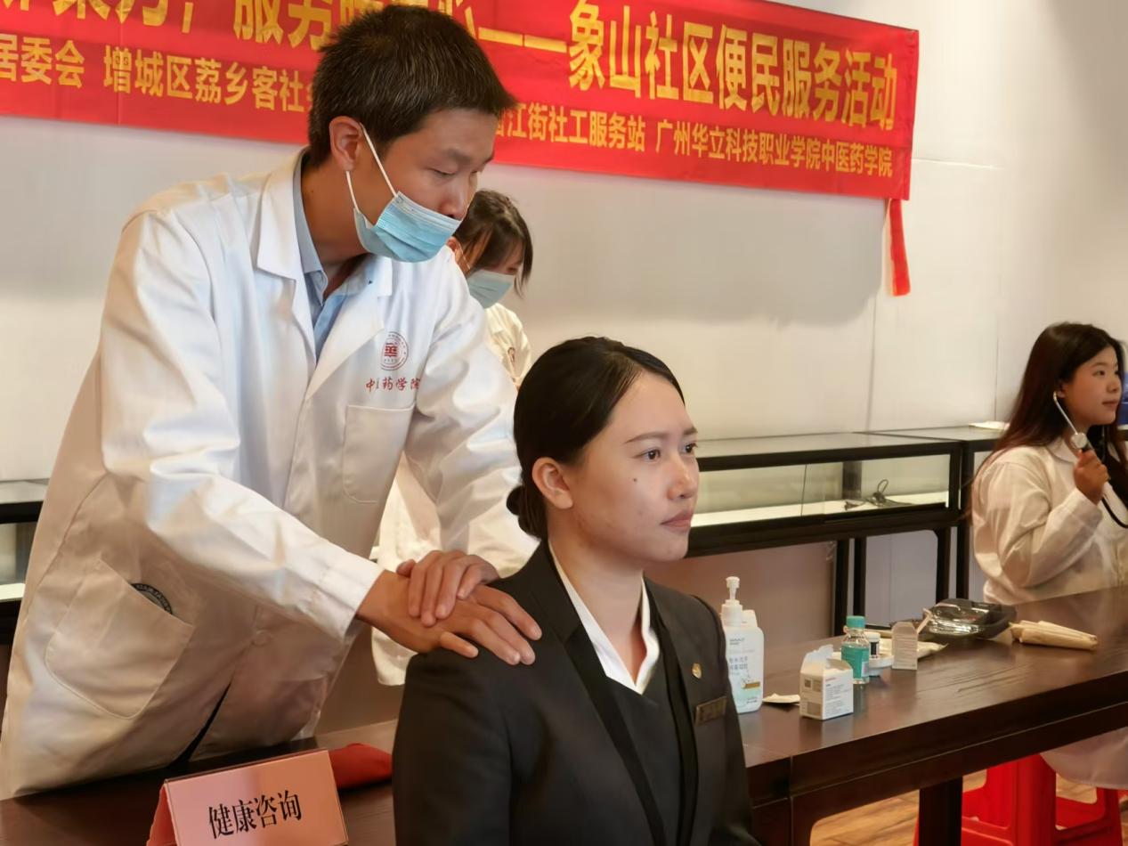 為進(jìn)一步弘揚(yáng)中醫(yī)健康文化、普及中醫(yī)藥健康養(yǎng)生知識(shí),11月22日上午,在增江街社工站的組織下,由學(xué)院潘菽弢博士、團(tuán)委書記謝梓婷老師帶隊(duì),入黨積極分子及學(xué)生干部組成的中醫(yī)理療服務(wù)隊(duì)前往廣州院子與MG私人定制共同開展“黨建鄰聚力,服務(wù)暖人心”象山社區(qū)便民服務(wù)活動(dòng)。
