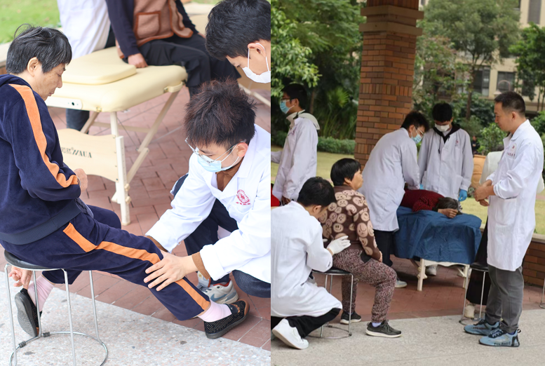 中醫(yī)推拿按摩區(qū)域人氣爆棚,備受居民青睞。志愿者們憑借扎實的專業(yè)知識和嫻熟手法,為居民們舒緩肩頸、腰部等部位的酸痛,緩解身體疲勞。一位長期被頸椎病困擾的阿姨,在接受志愿者推拿按摩后,欣喜地說道:“這些大學(xué)生志愿者手法太專業(yè)了,按完脖子舒服許多,真的太感謝他們了!”志愿者們還耐心傳授居民一些簡單實用的自我保健按摩技巧,讓居民在家中就能自行緩解身體不適。
