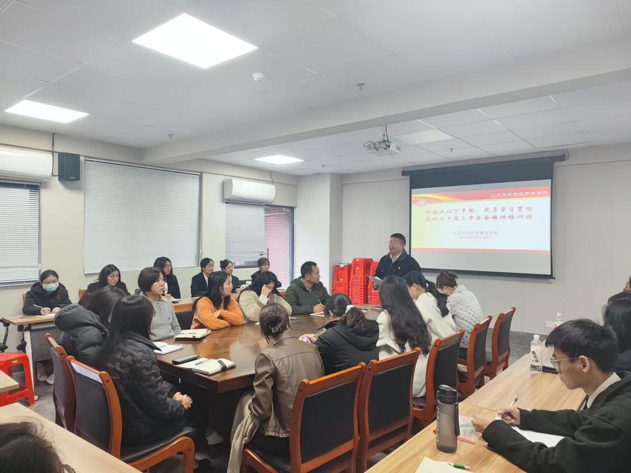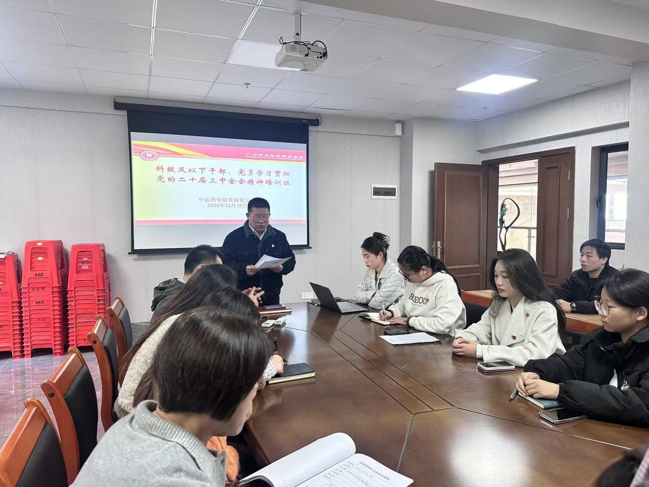 為深入學(xué)習(xí)貫徹黨的二十屆三中全會(huì)精神,切實(shí)把思想和行動(dòng)統(tǒng)一到全會(huì)精神上來(lái),中醫(yī)藥學(xué)院直屬黨支部于12月18日至3月14日期間舉辦了科技及以下干部學(xué)習(xí)貫徹黨的二十屆三中全會(huì)精神專(zhuān)題輔導(dǎo)班。37名科技及以下干部、黨員參加了此次培訓(xùn)。
