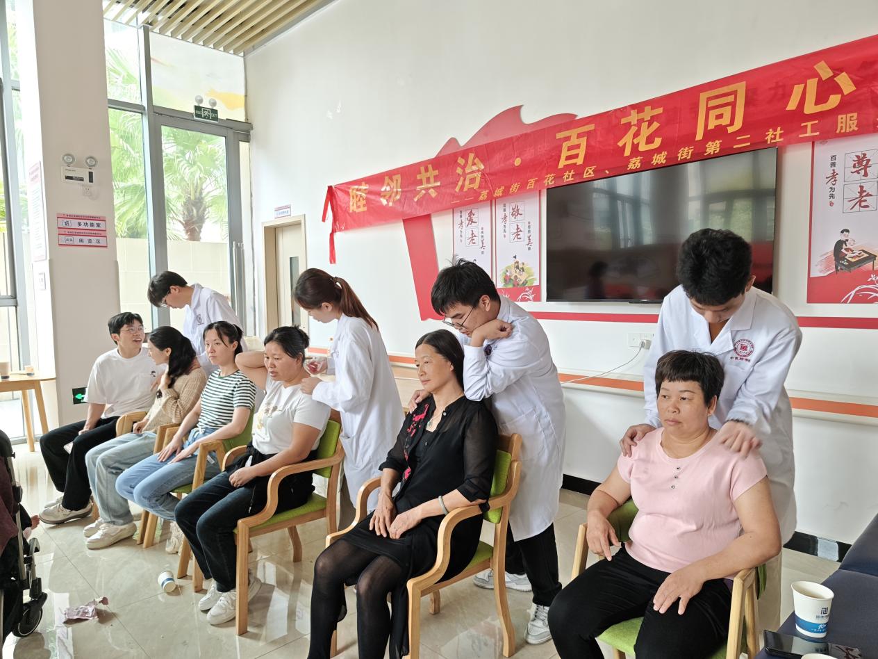推拿區(qū),師生們熟練地運用專業(yè)手法,為飽受頸肩腰腿痛困擾的居民進行推拿治療,不少居民在體驗后,紛紛表示疼痛得到明顯緩解,臉上露出輕松的笑容。