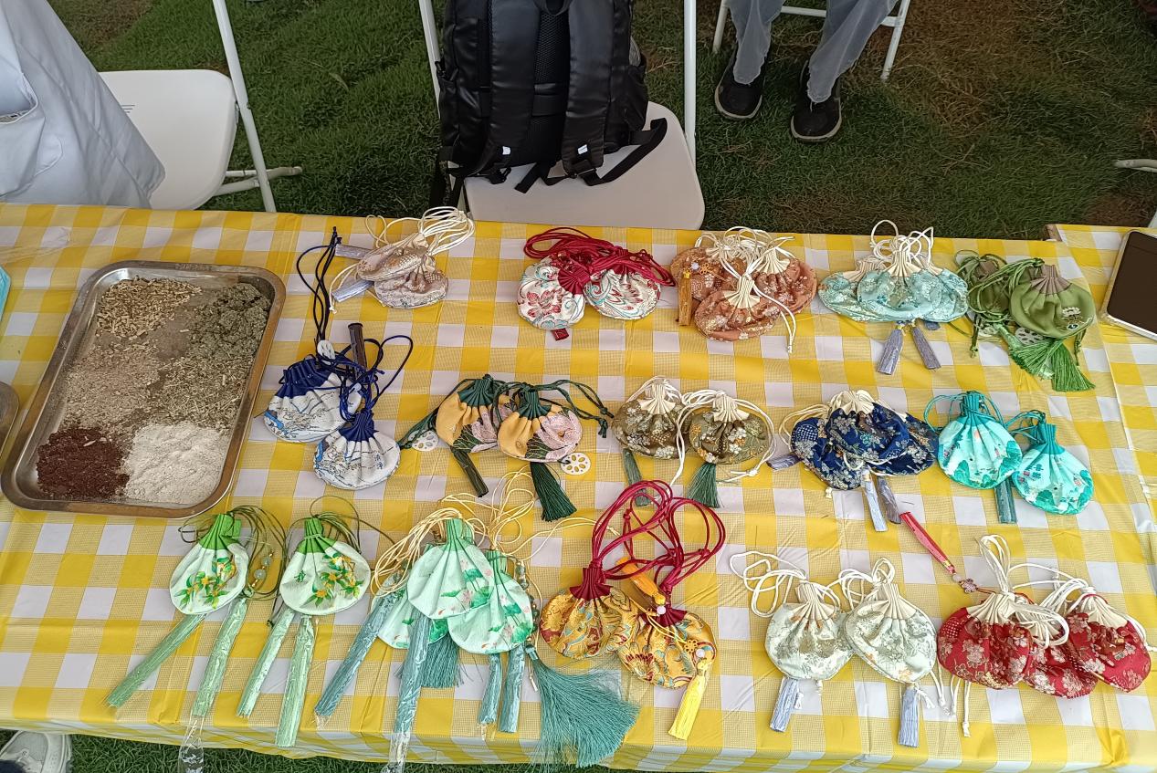 中醫(yī)說“百病生于氣”,而森林是最好的解郁藥,為了緩解人們的生活壓力,中醫(yī)藥學(xué)院制定了有針對兒童的香囊制作板塊、面向社會群眾的中醫(yī)保健推拿、健康咨詢、中藥夏日飲品等板塊。