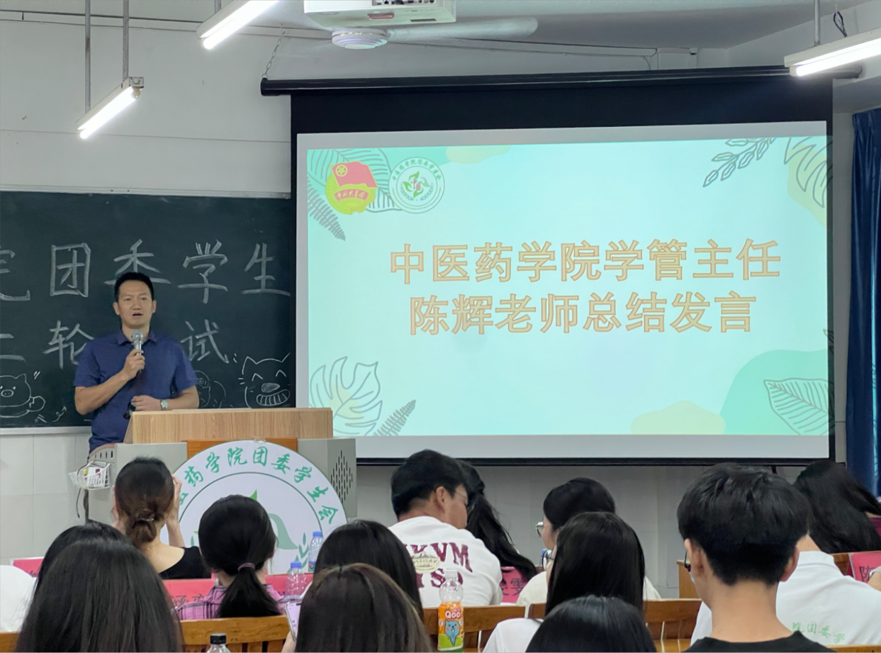 圖片為中醫(yī)藥學(xué)院學(xué)管主任陳輝老師總結(jié)發(fā)言