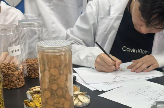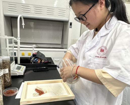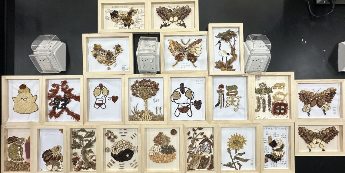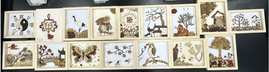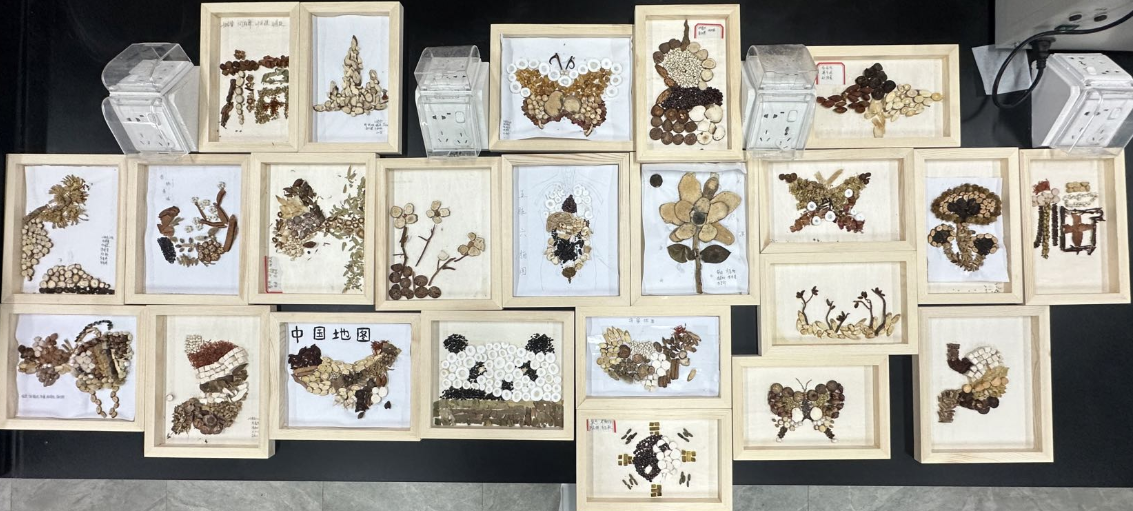 與傳統(tǒng)繪畫不同,本次大賽要求參賽者以中藥材本身為主要創(chuàng)作材料,輔以繪畫技藝,將中藥的形態(tài)、色彩、藥性、文化內(nèi)涵融入藝術(shù)創(chuàng)作中?;顒蝇F(xiàn)場,琳瑯滿目的中藥材——如色澤鮮艷的枸杞、形態(tài)各異的決明子、紋理獨特的茯苓片、香氣四溢的艾葉、清雅的白芷片,以及各種形態(tài)的種子、根莖、花葉等——在同學(xué)們靈巧的雙手下,化身為藝術(shù)創(chuàng)作的神奇畫筆。