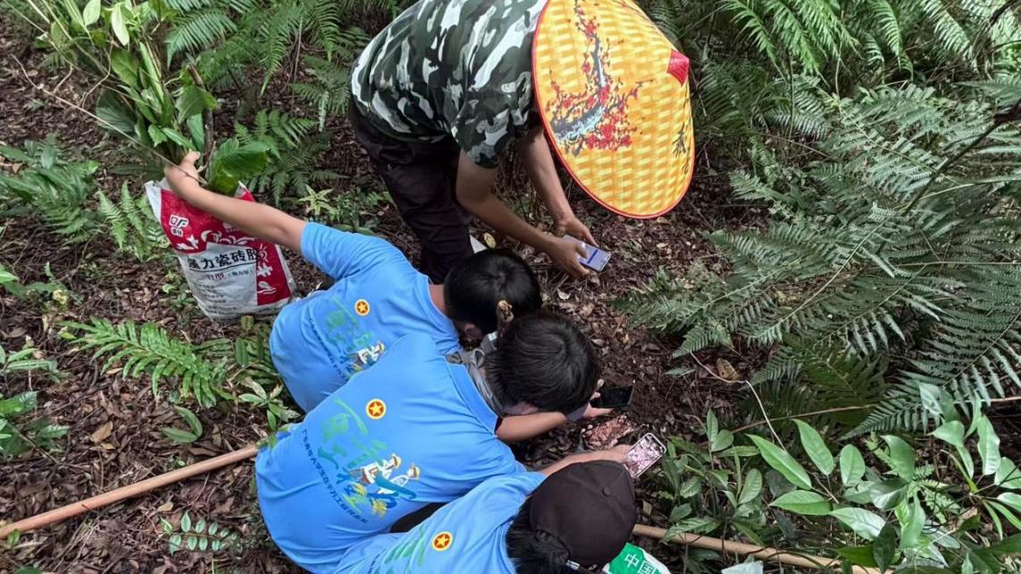 7月15日上午,廣州華立科技職業(yè)學院“神農(nóng)俠旅”突擊隊四名隊員在潘菽弢博士帶領下,走入福堂鎮(zhèn)讀樓村的山林中拍攝野生中藥材,并移栽部分藥材種苗,為后續(xù)的中藥材育苗基地建設提供科學依據(jù)。