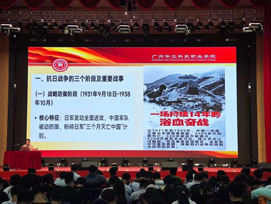 抗戰(zhàn)勝利不是天上掉下來的,是3500萬同胞用生命換來的。曾書記結(jié)合“七七事變”“南京大屠殺”“百團(tuán)大戰(zhàn)”等歷史事件,梳理抗戰(zhàn)歷程中的關(guān)鍵節(jié)點,讓新生們直觀感受到抗戰(zhàn)不易?!拔覀兗o(jì)念抗戰(zhàn),不是為了延續(xù)仇恨,而是為了讓你們明白:和平是多么珍貴,民族精神是多么強大?!彼麖娬{(diào),新時代青年要從歷史中汲取“天下興亡、匹夫有責(zé)”的愛國情懷,“把個人命運與國家命運緊密聯(lián)系在一起”。