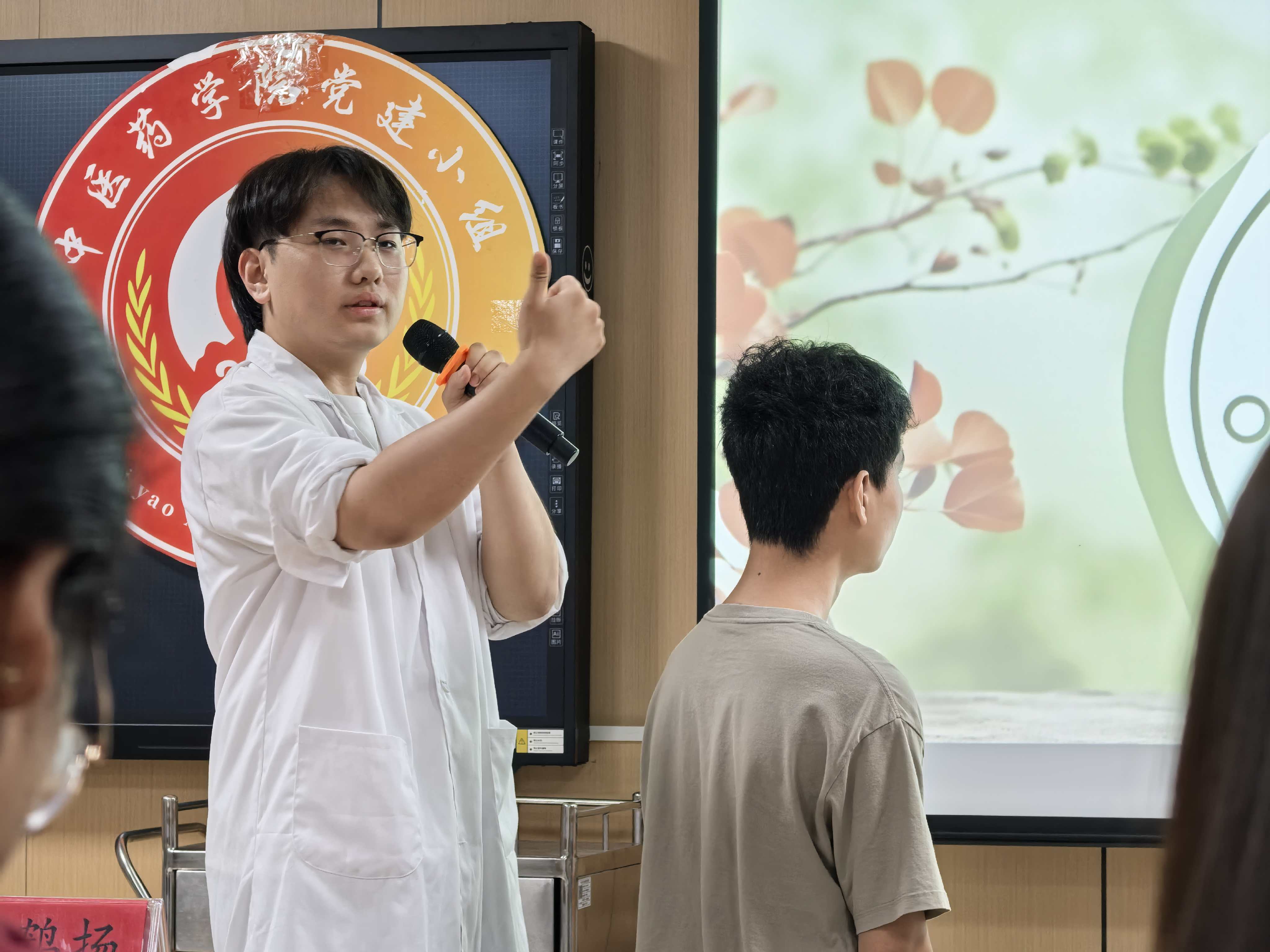 在本次專題講座的現(xiàn)場,宿鶴揚作為主講人。他以中醫(yī)柔性推拿為主題,從傳統(tǒng)中醫(yī)理論出發(fā),講解其“以柔為法、以柔為用”的基本原理。手法介紹環(huán)節(jié),他不僅演示推、拿、按、摩等常用手法,還強調手法運用的輕重緩急與力度把控。此外,他針對不同癥狀適用性,結合臨床案例,說明柔性推拿對頸椎病、腰椎間盤突出等常見病癥的調理作用。講座中,宿鶴揚將中醫(yī)經絡學說、氣血理論等專業(yè)知識,通過形象比喻和生活案例轉化為通俗易懂的內容,讓同學們輕松掌握要領,對中醫(yī)柔性推拿有更深入認識和理解。