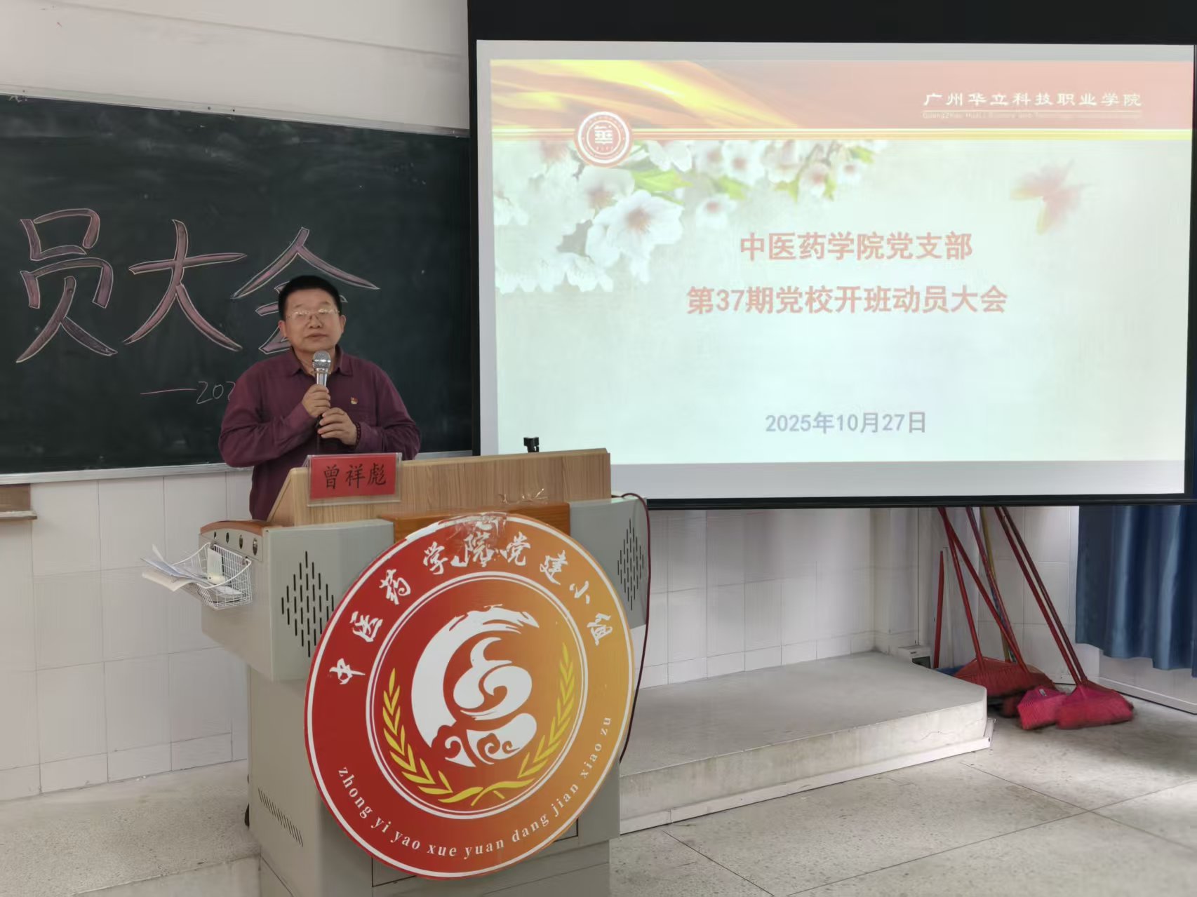 2025年10月27日中午,中醫(yī)藥學(xué)院直屬黨支部在黨校正式開班前,在西二201教室舉行了莊重而熱烈的開班動(dòng)員大會(huì)。學(xué)院黨支部書記曾祥彪、支部組織委員鄭潔儀老師出席會(huì)議并作動(dòng)員講話,全體39名經(jīng)過(guò)層層選拔的入黨積極分子參加了會(huì)議。