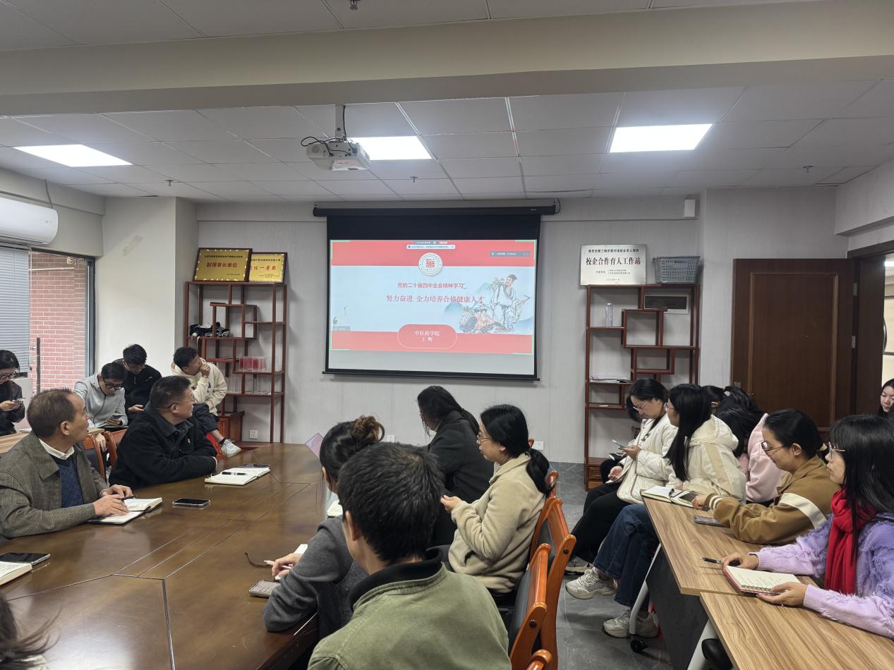 為深入學(xué)習(xí)貫徹黨的二十屆四中全會(huì)精神,扎實(shí)落實(shí)廣東省“六個(gè)一百”宣傳活動(dòng)部署及學(xué)校黨委工作要求,11月19日,中醫(yī)藥學(xué)院直屬黨支部在G1-212會(huì)議室舉辦專題宣講活動(dòng)。學(xué)院院長(zhǎng)王暉以“努力奮進(jìn) 全力培養(yǎng)合格健康人才”為主題,為全院教職工帶來了一場(chǎng)兼具思想深度與實(shí)踐指導(dǎo)意義的精彩宣講,推動(dòng)全會(huì)精神在學(xué)院落地生根。